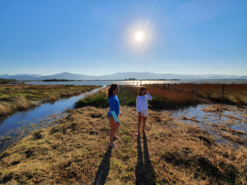 Hoje relaxamos na praia, construimos uma cidade inteira na areia da beira da lagoa e nos atrevemos até a entrar naquela água fria. Betina de biquini, parecia que estava em pleno verão, cadê o frio? Frio que nada!