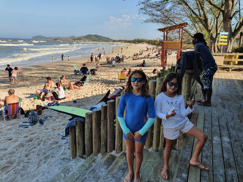 Seguimos então rumo a Praia do Rosa, passando pela balsa de Laguna, uma volta de carro para conhecer o centrinho histórico de Laguna e chegar na Praia do Rosa. No centrinho do Rosa, tivemos um jantar divertido no Lola-Resto bar e com a companhia de dois meninos que chegaram com outra família.